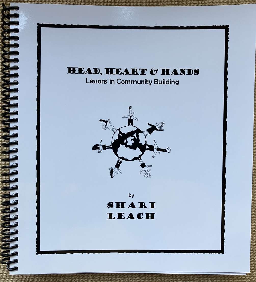 Head, Heart & Hands, by Shari Leach, is a hands-on activity book for cohousing groups. Aims to empower groups to move effectively through the various stages of development. It covers ground rules, defining your community values and vision, and consensus 101.
